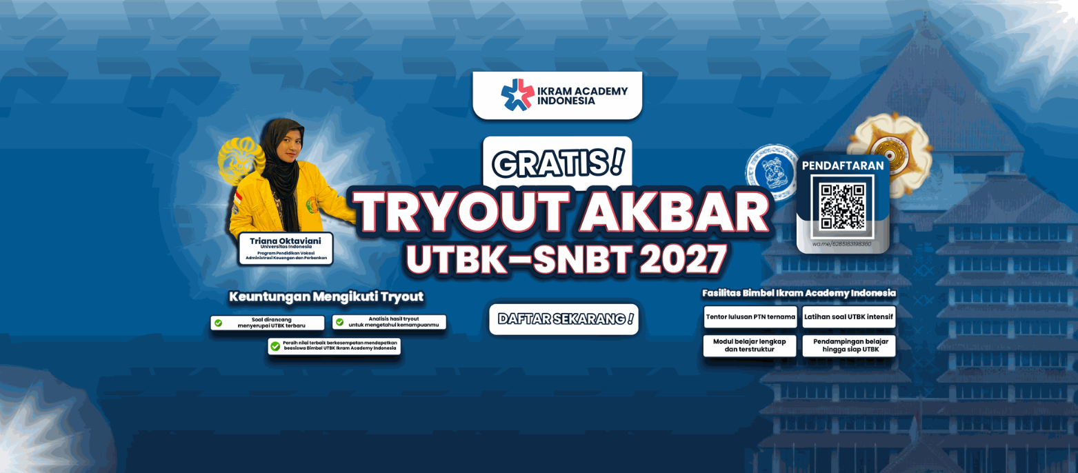 Bimbel Ikram Academy adalah program bimbingan belajar UTBK-SNBT yang dirancang untuk membantu siswa meraih skor terbaik dan lolos ke PTN impian. Dengan materi yang selalu diperbarui sesuai kisi-kisi terbaru, serta didukung oleh pengajar berpengalaman memberikan pembelajaran yang terarah, efektif, dan mudah dipahami.